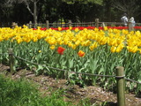 今日も空は薄雲がかかるが、軽く20℃を越える暖かい一日。クルマのオートエアコンも、昼には冷房が自動でかかる。そんな本日は来月の連休明けに納期が来る品物があり、一日大和工場で確認と調整。これ、先週も出した大和の公園にある花壇。今はチューリップが満開だが、赤白黄色のチューリップ、必ずいくつか色違いが植えられる。単に球根の選定ミスかと思っていたが、よく見ると黄色と赤のまだらもある。選定ミスもあるだろうが、突然変異もあるのかもと思ったところ。